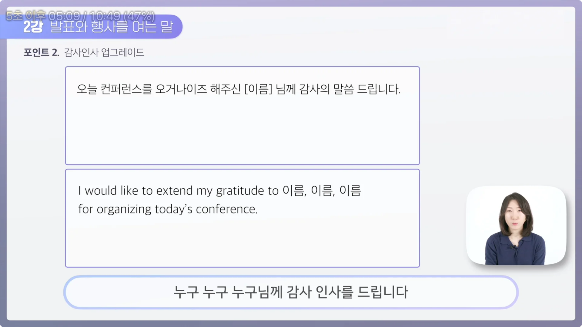 지금까지 배운 발표 오프닝 표현들은 기본 이론편이었는데요. 실제 강의에서는 '활용'까지 모두 다루고 있어요. 실제 강의에서는 아래와 같은 활용 방법들을 중점적으로 알려드리고 있습니다! 😀